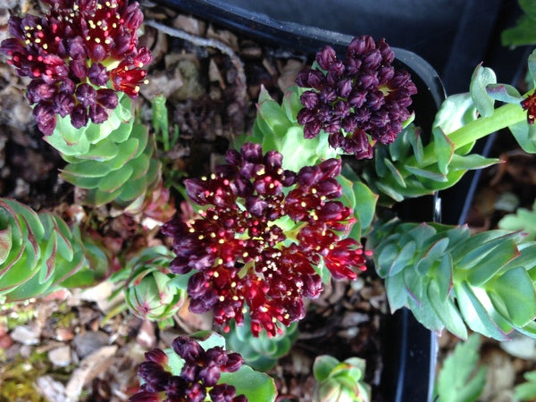 Unit price perMountain dweller in the Cascades BC to CA, popping over to Colorado and up into the northern arctic regions. Good rock garden plant down here where the livin' is easy. Succulent blue-green leaves clad the many stems while the terminal clustered red flowers glitter like a garnet hatpin.