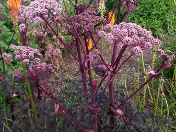 Unit price perA striking Angelica for the sunny border. Finely dissected, deep purple to nearly black foliage is accented by purple buds revealing pink flowers in late summer. Biennial, but removing spent flowers before seed set will prolong its life a few years. Or if you have terrible timing, just collect and plant the seeds.