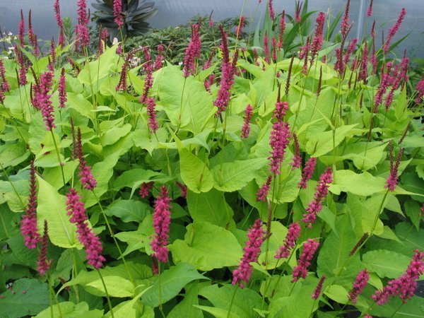 Unit price perFun newish selection of the recently moved to Bistorta from Persicaria with softly golden foliage which is a great backdrop for the 24"-36" flower stems bearing spikes of flowers the same color as Dorothy's ruby slippers. Easy, hardy, bright shade and gangbusters in rich moist soil.