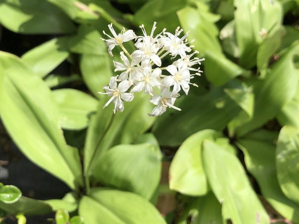 Unit price perSpeckled Wood-lily is common name as white flowers are lightly speckled in green and purple. The flowers are held in an umbel clustered atop stems up to twenty inches tall if the plant is in its happy place, The flowers are replaced by round black fruit. The tongue-like green leaves make a dense cover and this is gently rhizomatous creating a small carpet in time. Good soil in shade and reasonably moist. These are our own divisions and not bought-in wild collections.