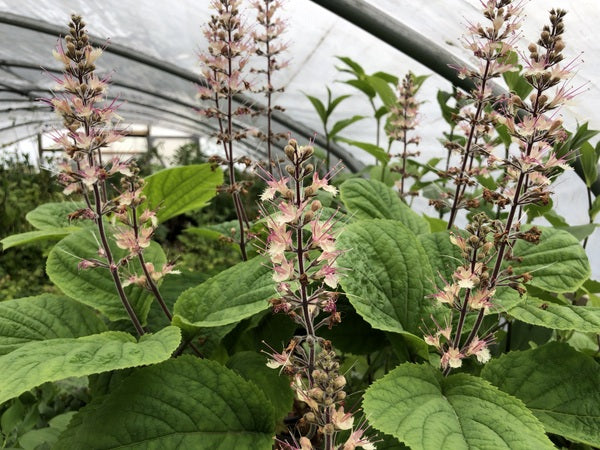Unit price perWhorled Stoneroot. A pretty sweet Southeastern woodland wildflower whose uppermost two pairs of broad leaves are so close together you would think they were held in a whorled arrangement rather than opposite. Add in its woody rhizome and you have the origins of its common name. The spike of peachy-cream flowers is both lovely and rich in detail. I gallon size.