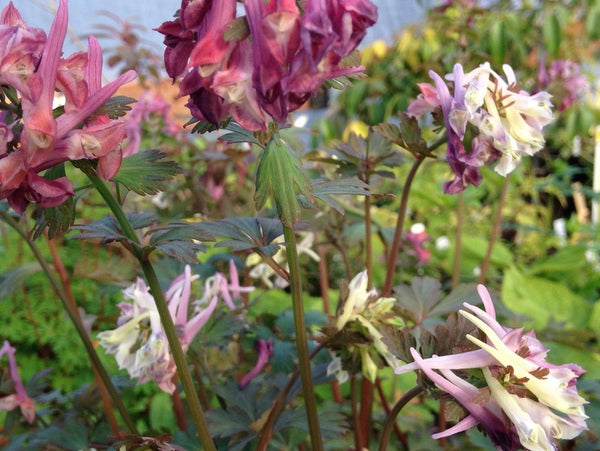 Unit price perThis is related to Corydalis temulifolia 'Chocolate Stars' and has a similar, if smaller, above-ground bulbous rhizome and tons of flowers on long, lax stems The flowers go through color phases of white, pink and dusky purple appearing concurrently during a long flowering period of spring through summer. A remarkable plant. Thanks to Magnus Liden for ID help. Our clone of this has not produced seed so these are from division.