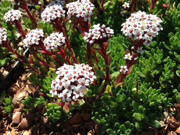 Unit price perA good hardy form of this Sedum-like species from Rick Lupp of Mt Tahoma Alpines who has grown this in his sand beds for over 20 years where it has taken single digits in the winter. Low, fleshy green leaves are a perfect backdrop for the salmon-red 3"-4" flower stems with nice heads of small white flowers accented by a small salmon-pink eye. Perfect in our crevice garden.