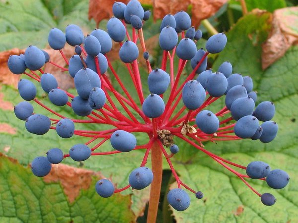 Unit price perA very choice plant from the Appalachian Mts and closely allied to Podophyllum as they are both herbaceous members of the Berberidaceae. Broad leaves to a foot or more across with small white flowers which are easy to miss but screaming blue berries holler "Look at me!". Shade.