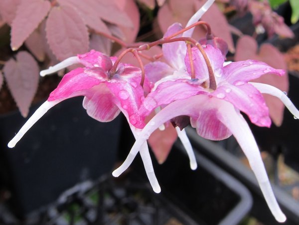 Marvelous selection by Harold Epstein and named for his wife, this has some of the most opulently colored new growth which marries perfectly to the large purplish flowers. A deciduous species from Japan and an excellent garden plant that has no faults as far as we can tell.