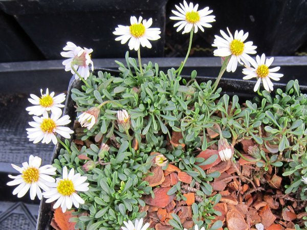 Unit price perRock Fleabane. A mighty mite in the Asteraceae family, this rock crevice dweller was not discovered until 1978 in the Chiricahua Mts in Arizona and later was found 200 miles east in the Black Range of New Mexico. It has been very easy and rock hardy for us and although drought tolerant, adapts to frequent irrigation if given excellent drainage. Small white flowers dot the less than 1" tall ground-hugging mat of small leaves. Perfect for a trough, filling in crevices in stone walks or chinking the seams in a rock wall.