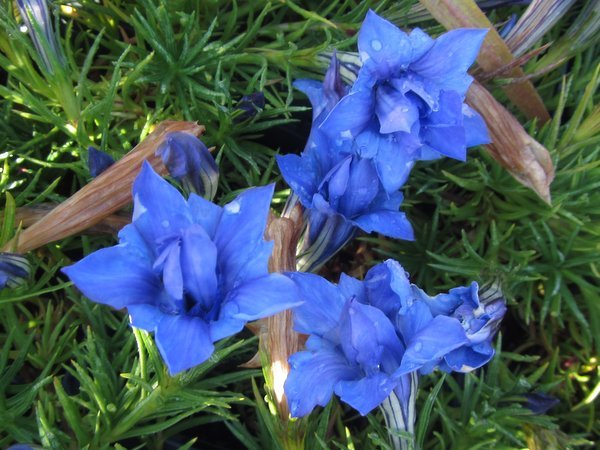 Unit price perAn uncommon double form of the Asiatic Gentian found and introduced by German plantsman Eugen Schleipfer and introduced to this country by Urs Baltensperger. These fully double dark blue flowers last for weeks in late August into Fall and will cause visitors to perform a potentially dangerous pivot in midstep as they are strolling by when they realize they are seeing double so have your waivers all signed. Sun and moist acidic soil.