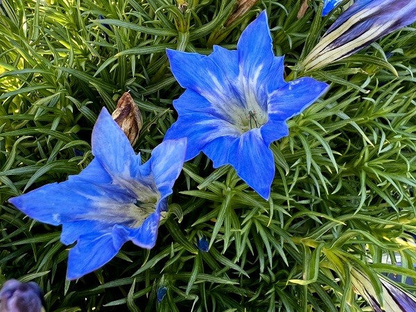 Unit price perA Far Reaches introduction to the US from the UK. This uncommon selection is a worthy addition to the gentian collection. Fairly vigorous, this has ample mid-blue trumpets emblazoned with slim white arrows in the interior. As with all the Asiatic Gentians, rich, moist & acidic.