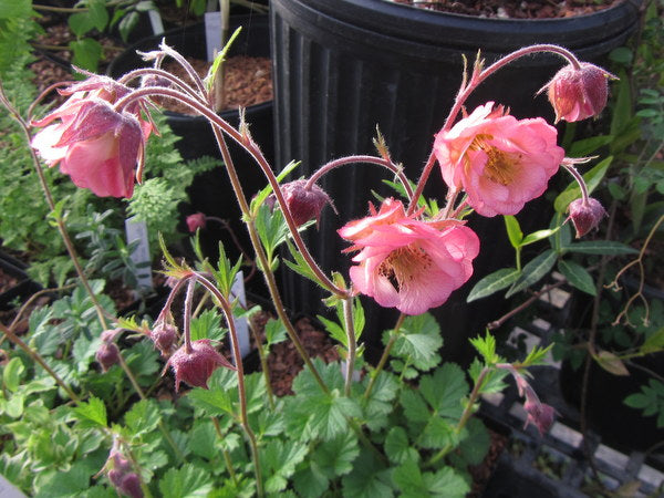 Unit price perAwesome Geum rivale hybrid from Yorkshire plantsman Geoffrey Smith which we brought back from Binny Plants in Scotland some years ago and can now offer a few from division. This has a refinement lacking in the newer in-your-face hybrids which we quite appreciate. Nodding coppery-pink flowers straighten out becoming soft pink. This is the correct clone as opposed to mislabeled plants from Holland.