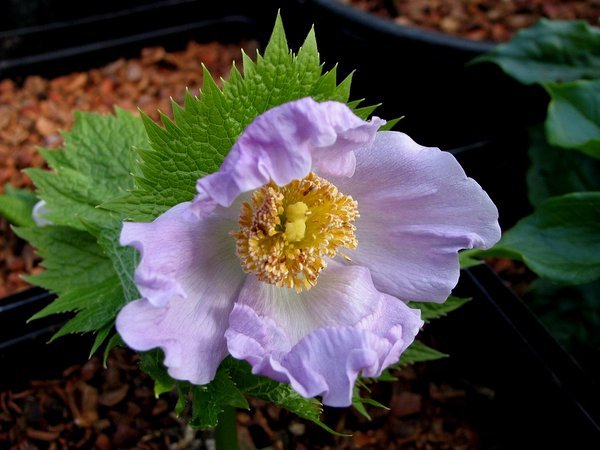 This Japanese woodlander is among the very elite of plants for shade. Slow to propagate and uncommonly beautiful, this is always coveted and spendy. Broad Maple like leaves are the foil for the large 3" light lavender Poppy-esque flowers. Cool shade is ideal for this prize.