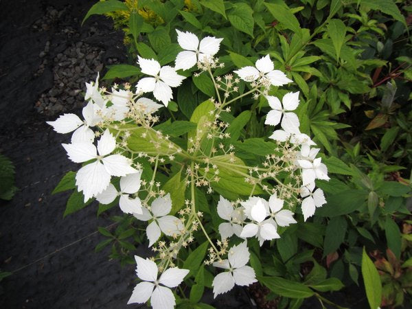 Unit price perA superb form of this variable species obtained from the former Quarryhill Botanic Gardens. Green elliptical leaves pair nicely with the large flattened corymbs of white fertile flowers which are sporadically fringed in over-sized pure white sterile florets. This owns a spot in perpetuity on our personal list of faves.