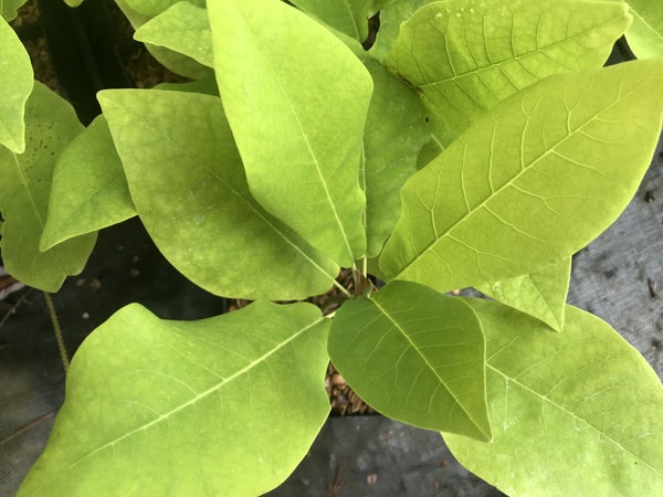 Unit price perThis is the rarest US Magnolia species occurring in just 6 counties in the Florida panhandle. Fantastic species with huge leaves up to 2' or more long and nearly a foot across. On plants young as 3-4 years old, white scented flowers to 10" wide appear in May avoiding frost damage . Dramatic large shrub to small tree. Best protected from too much wind and protected in zone 6 winters until well established. Ours are seed-grown from private property in Walton County.