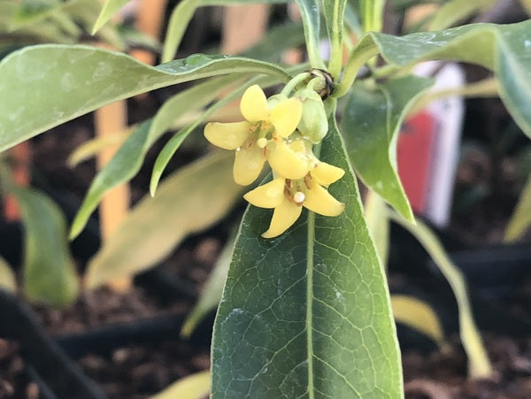 Unit price perUnidentified species of a seriously good Asian Pittosporum. This was an attention-grabber being essentially a small 15' tree with large - for a Pittosporum - evergreen leaves. What really stopped us was the large green seed capsules like small figs. These split open when mature to reveal showy orange seeds. Young seed-grown plants. We are hoping these will have good hardiness growing as they were a stone's throw from Acer griseum. A Far Reaches Botanical Conservancy Offering. Proceeds from this offering go to support the mission of Far Reaches Botanical Conservancy.