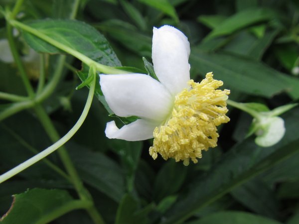 Unit price perAn unusual Asian hydrangea relative that has quietly won us over by growing larger each year and consistently flowering under a regime which could only be generously described as one of benign neglect. This makes a small broadly rounded twiggy deciduous shrub to 2'-3' in the garden although older specimens in the wild are said to get to 5'. Narrow willow-like green leaves with small teeth along the margins combine well with the late summer-fall small white flowers. The 4-petaled fertile flowers have a prominent yellow button of stamens which the infertile flowers lack. We have seen accounts of this growing well in North Carolina and southern Indiana. This will be happiest in light shade or part eastern sun. Platycrater hails from southeastern China in provinces near to Shanghai and also from Shikoku in Japan. These two geographical populations are separated by some authorities based on hairs on the leaf underside and we are making a note to self to take the hand lens to a leaf as soon as we can. Why not now you ask? How can you leave us hanging in such suspense? It is winter as we type this and there are no leaves but we will get to it asap!