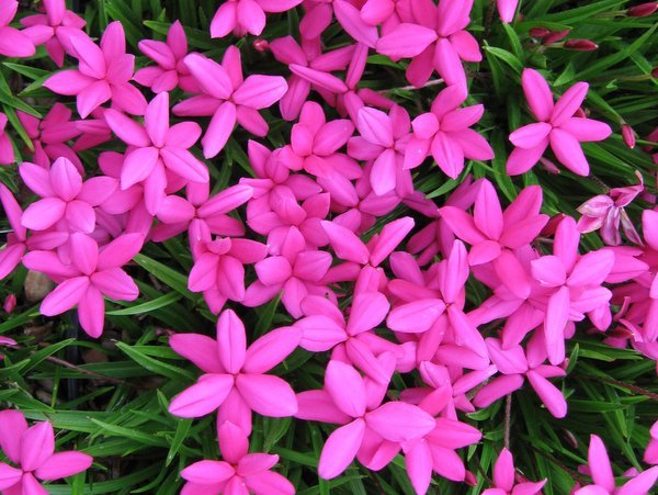Unit price perIn the interest of full disclosure, we received this as Rhodohypoxis rubella from a reputable Dutch specialty bulb grower years back and we are having our doubts as to its veracity. Images of R. rubella in the wild suggest it is lighter pink, but then plants can have tremendous variability in the wild or none at all depending on the species. This has smaller flowers than typical R. baurii or its hybrids and smothers itself in rich deep dark pink flowers. Rhodohypoxis grow in South Africa at higher elevations on granitic cliffs where they inhabit little soil-filled pockets. They like good drainage and moisture while in growth and need the good drainage in winter to keep from rotting. Traditionally a classic bulb for small containers or pans as they they quickly fill out a pot and put on quite the display and then when they are going dormant it is easy to bring them into the garage or cool greenhouse over the winter. Here in the PNW, these are excellent rock garden subjects requiring only a bit of covering if winter temps plummet.