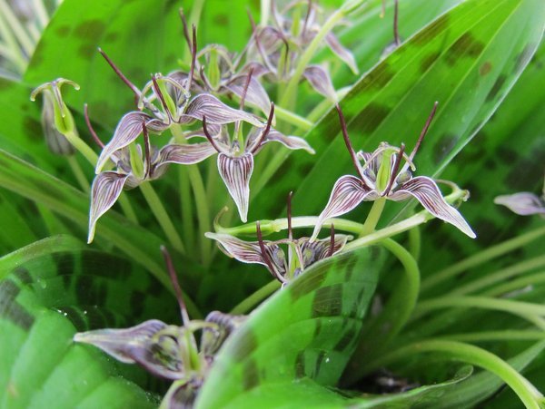 Unit price perFoetid Adders Tongue. How can you not love a plant with a name like this? Trillium relative native to the coastal Redwoods of California, this ranks as one of our most favorite plants. Sure the intricate early spring flowers smell of gym locker wet dog but how cool! And what foliage!