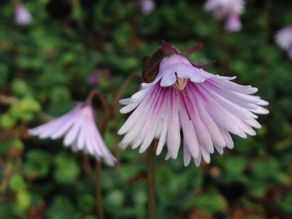 Unit price perSuperbly vigorous 2nd generation hybrid of S. carpatica x S. pusilla from the vaunted Edrom Nursery in Scotland and we may be the first to introduce this to North America. If you are into small ornament of ingenious construction, the maximization of minimalism, a totally improbable flower to foliage ratio - we have you so covered! Soldanella are alpen sophisticates that should be grown more in northern cool climates. This hybrid retains the vigor of the comparatively coarse S. pusilla and brings in superior flowers and foliage of S. carpatica. Evergreen tiny round leaves and 4" salmon pink flower stems with lavender-blue fringed bells in early spring is an impeccable combination. Loose gritty-humusy soil in dappled light or morning sun is great.