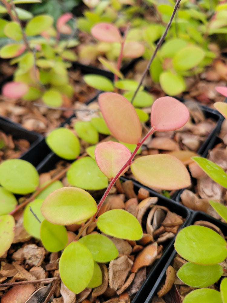 Unit price perAn uncommon New World subtropical blueberry relative native to the Andes. Can be epiphytic and has hanging thin branches up to 5' long but usually shorter with rounded pale green leaves. Just looks like it wants to be on a dripping cliff by a waterfall. Egg-shaped flowers that are white-pink with darker tips followed by translucent violet-tinged edible berries much like Agapetes. No frost. Way nifty.