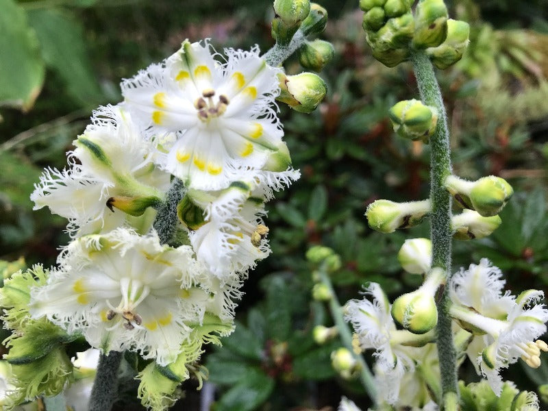 Unit price perA rare species from shaded moist areas in coastal Mendocino and Sonoma Counties in CA. Pleated leaves and branched flower stems to nearly 2 feet bear beautifully fringed snowy white flowers. Regarded as tender, Veratrum expert Christoph Ruby of Hof Botanic Garden in Germany tells us zone 5 hardy!