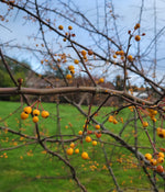 Unit price perThis was quite a pleasing sight as we slogged up the muddy trail of an obscure mountain in Guizhou with the rain coming down and the slopes wreathed in thick fog and the contemplation of setting up a very wet camp later was weighing down our normally plant-happy attitudes which are the norm when out in the field and we were just starting to grumble when we came around a corner and saw looming out of the mist and overhanging the trail, branches of this fine Malus laden with small cheery lemon-yellow crab apples each bejeweled in glittering raindrops and it was like gazing upon a constellation of anti-depressants. What rain? What mud? All is forgotten with a good dose of plant hunter's little helpers. Small trees to 15' with broad, irregular crowns and likely white flowers.