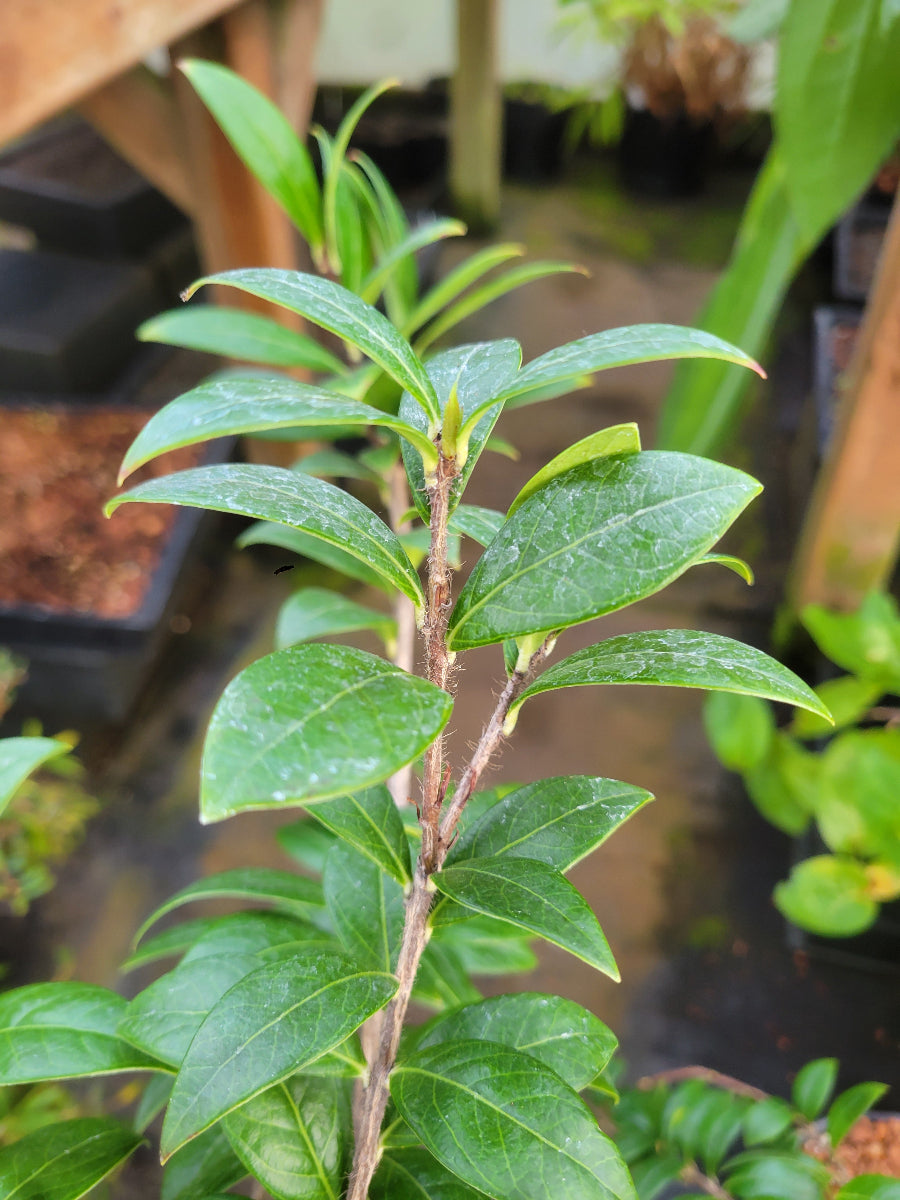 Unit price perNever enough of these whimsical epiphytic blueberry relatives with their chunky lignotubers and whimsical tubular flowers in a seemingly infinite variety of colors and patterns. Luckily thanks to our favorite local Ericaceae dealer Steve Hootman we are never long without. We haven't flowered this collection yet but fair to expect white slightly fuzzed flowers with green at the base and tips. The densely hairy arching stems and glossy leaves are good enough on their own, especially when they are flushing new foliage in salmon tones. Particularly vigorous and easy to keep looking nice as compared to its fellows in the genus, may have some hardiness as well.