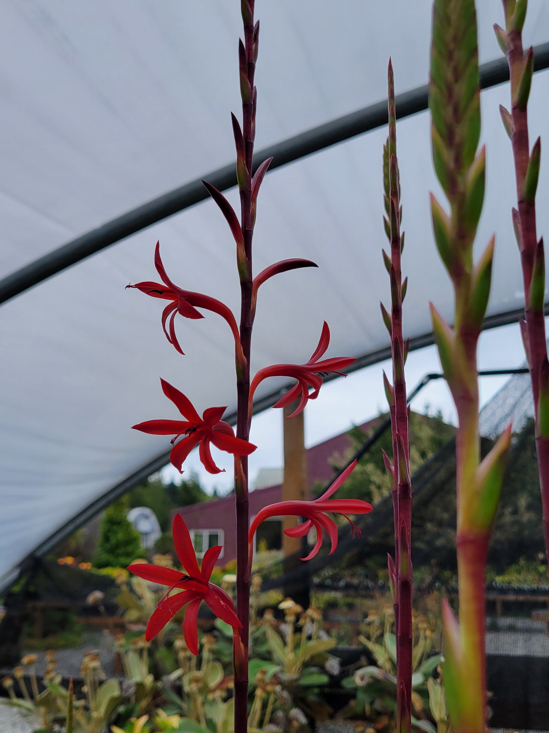 Unit price perThis natural hybrid of one of the classic South African bulb genera is endemic to Cape Province, and you'd be hard pressed to find it much further than that native range even in cultivation, luckily we have excellent connections like Michael Wickenden who generously shared it with us. Bladelike foliage, while nice, is unlikely to wow. The flowers however can grow in great spikes of up to 6 1/2 ft tall! Individual florets can come in red or pink and look rather similar to a more trumpeted Hesperantha, corollas flaring out to a star shaped opening. Prefers a Mediterranean climate and very well draining soil, can be pot-grown in a similarly draining mixture for those not living the riviera lifestyle. *THIS DESCRIPTION REFERS TO WATSONIA X LONGIFOLIA AND IS YET TO BE UPDATED TO CONCUR WITH ITS PROPER ID*