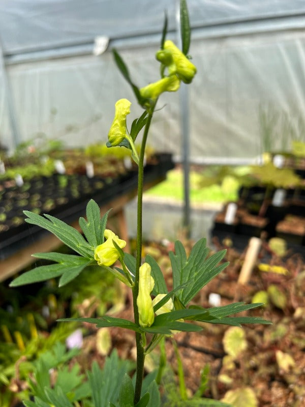 Unit price perWolfsbane. Our collection from the Swiss Alps of this quietly charming yellow-flowered Aconitum Lovely at trail's edge in the light shade of the deciduous forest in August. Apparently this is key to any good witches garden and used in shapeshifting spells and as a werewolf repellant. Better safe than sorry.