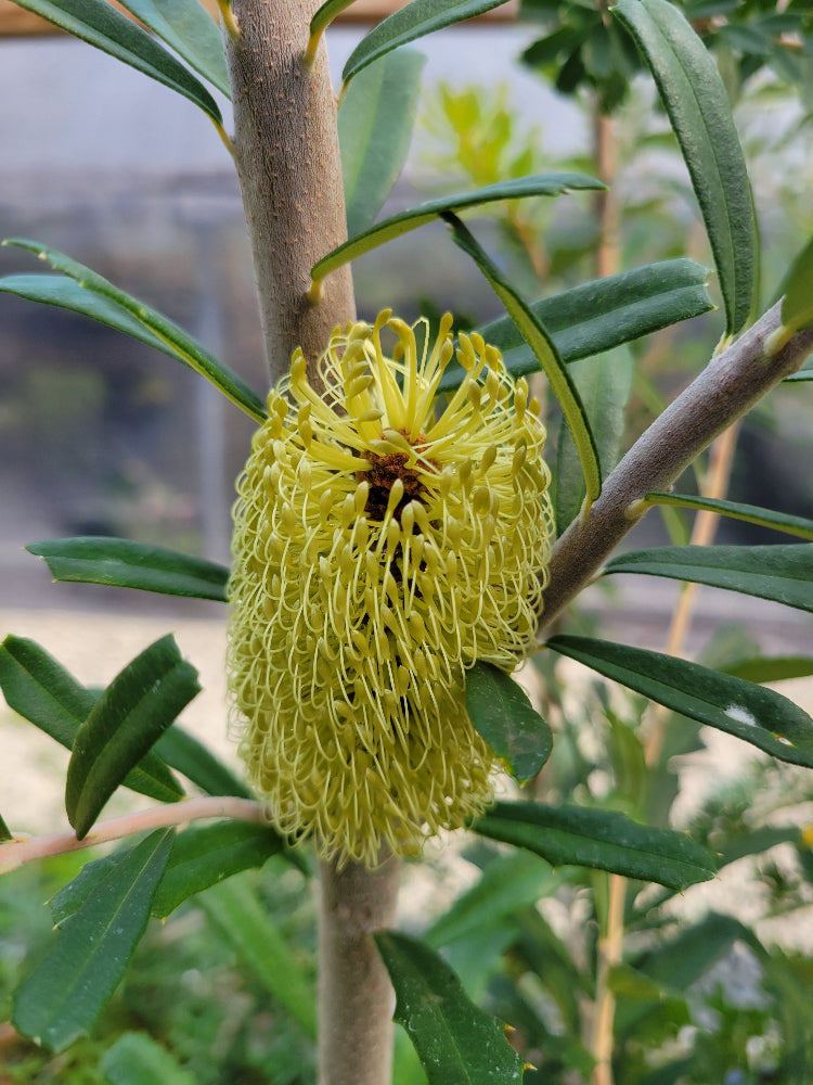 Unit price perProteaceae is a family of plant royalty with a loyal following, and for good reason the flowers of the group are often some of the most spectacularly otherworldly and botanically intricate of any in the plant kingdom. Unfortunately we here in the PNW are limited to a few choice species in an even choicer few genera. Generally this isn't thought to include the radical "cone"-bearing Aussie group Banksia though if ever there was a species to be tried here this is the one. We have heard rumors of successful specimens in Seattle and some of the coastal-est climes of the region. For those in the Bay just buy it and revel in the stamen-loaded goodness while we weep with envy. A sheltered sunny spot with as much heat as you can muster, with decent drainage and no phosphorous will give you the best chances.