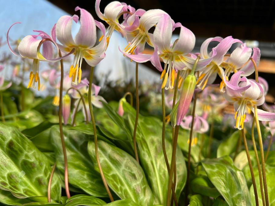 Unit price perWe received this as the Pioneer Mountain form of Erythronium revolutum and indeed, there is revolutum in them as well as californicum. These are obviously natural hybrids which do occur and perusing "Erythroniums in Cultivation" by Ian Young, these fit his description nicely especially with the parallel, narrow filaments.