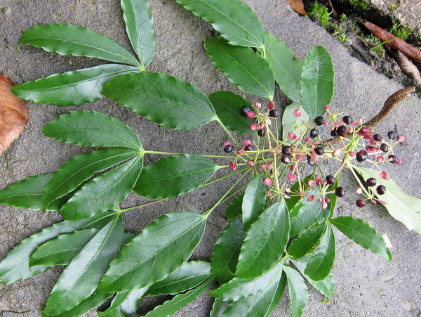 Unit price perWe have seen this species in the wild on multiple occasions and it is variable but all are first-rate foliage plants. This particular collection is derived from the plant voted best broadleaf evergreen of the trip, excluding Rhododendrons. Umbels of small creamy flowers give way to small black fruit. While we can't recall every plant we have seen plant hunting, the memory of this is crystal clear.