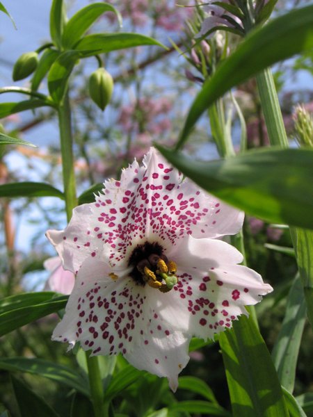 Unit price perThese are seed-grown bulbs from our original plants which we grew from seed we collected in the Cangshan in 1997. We were midway up the flank of the mountain and the weather cleared just enough to allow a glimpse far down to the plain below where the famed 3 Pagodas of Dali stood as faint pencil strokes fronting the wide expanse of Lake Erhai. A sight we will never forget. This a truly fabulous Lily relative with wide-open flowers dotted in maroon which open pink but age to white. When I go to the great compost pile in the hereafter, it is understood that Nomocharis pardanthina are to be strewn liberally on my casket. Rare and very choice. These are naturally small bulbs but they may well flower this spring. This will appreciate a cool site in light shade to morning sun. We know the related Nomocharis aperta can take a tough zone 5 winter and hopefully these can as well but we tend to be conservative so are sticking to zone 6 until we know different.