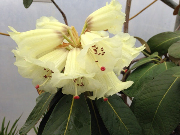 Unit price perOur own F2 hand-pollinated seedlings from this superb big leaf species which has shown more hardiness than the Kingdon-Ward collections from 70 years ago. This collection has handled 10F here in our garden with aplomb. Early spring trusses of big yellow flowers although interestingly, one of the original wild seedlings flowered white. Best in a sheltered position out of the wind and sun where the foliage can hit its max potential. These are sturdy youngsters. An amazing experience to see this species in the wild.