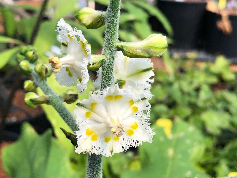 Unit price perA rare species from shaded moist areas in coastal Mendocino and Sonoma Counties in CA. Pleated leaves and branched flower stems to nearly 2 feet bear beautifully fringed snowy white flowers. Regarded as tender, Veratrum expert Christoph Ruby of Hof Botanic Garden in Germany tells us zone 5 hardy!