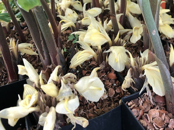 Unit price perFrom Asia, where in the autumn, the 30" pseudostems with their broad sword-like leaves had fallen to the ground exposing the bright red starfish fruiting capsules nested in the dark earth. The late summer flowers sit right at ground level like little yellow orchids with a tinge of pink to the labellum and flowers weeks later than our MD10-77 collection.This looks close to mioga but there are 43 Zingiber species in China alone. True Zingiber mioga is hardy in Kansas which blows our minds.