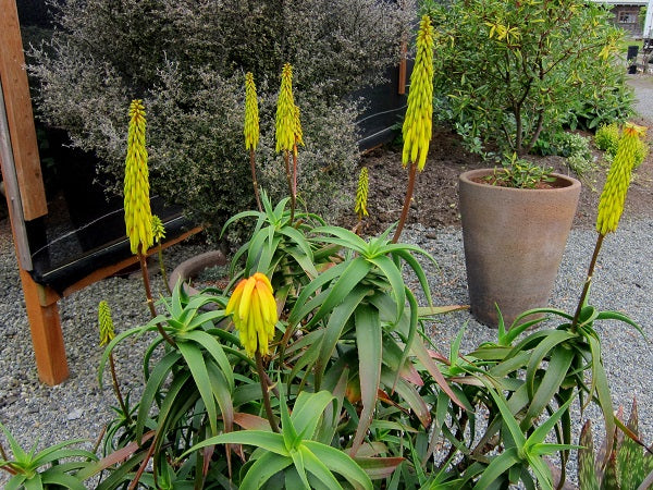 Unit price perOne of the hardier Aloes or former Aloe. This will survive winters in warmer Zone 8 gardens making a multi-stemmed shrub with terminal spires of orange-yellow showy flowers. If a cold freeze occurs, this will be cut to the base but will rapidly regrow come spring. Best to mulch prior to such an event.