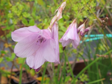 Unit price perGrown from wild collected seed sent by a friend in South Africa, this species has lavender to light pink slightly flared bell-shaped flowers of good size. These are held on wiry stems to 3 or 4 feet tall and pair well with many of the ornamental grasses being rather grass-like in foliage itself. Evergreen.