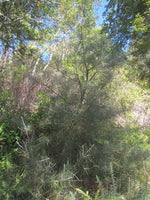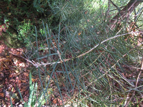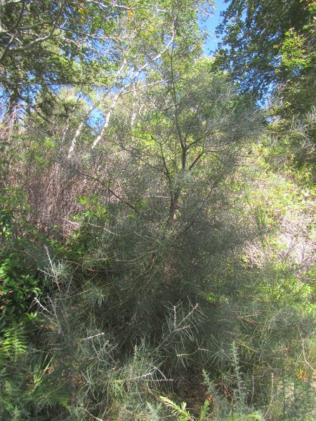 Needle Bush. Ouch! What the Hell???? Yes, it's sharp and not recommended for the Children's Play Garden or Hortucultural Therapy Garden but a must for the Plant Nerd Garden, Mediterranean Style or Garden of Wicked Delight. Takes wet or dry, sun to part shade, can grow to 12' with white flowers. It's in the Protea family so easy on the phosporous.