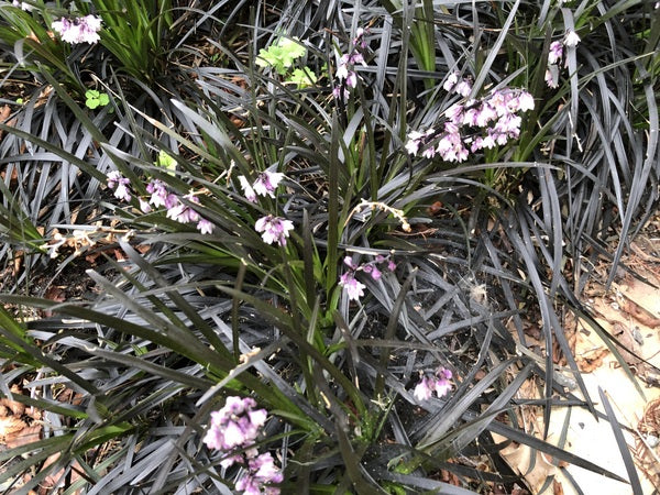 Unit price perBlack Mondo Grass. One of the classiest ornamentals and maybe the best for providing color and textural contrast, this can find a home in any garden. Fairly drought tolerant but thriving in more moist situations, this has evergreen (or everblack) leaves with pink flowers and shiny black pearl seeds. The cultivar names 'Nigrescens', 'Niger', and 'Black Dragon' have been very recently subsumed into 'Kokuryu'.