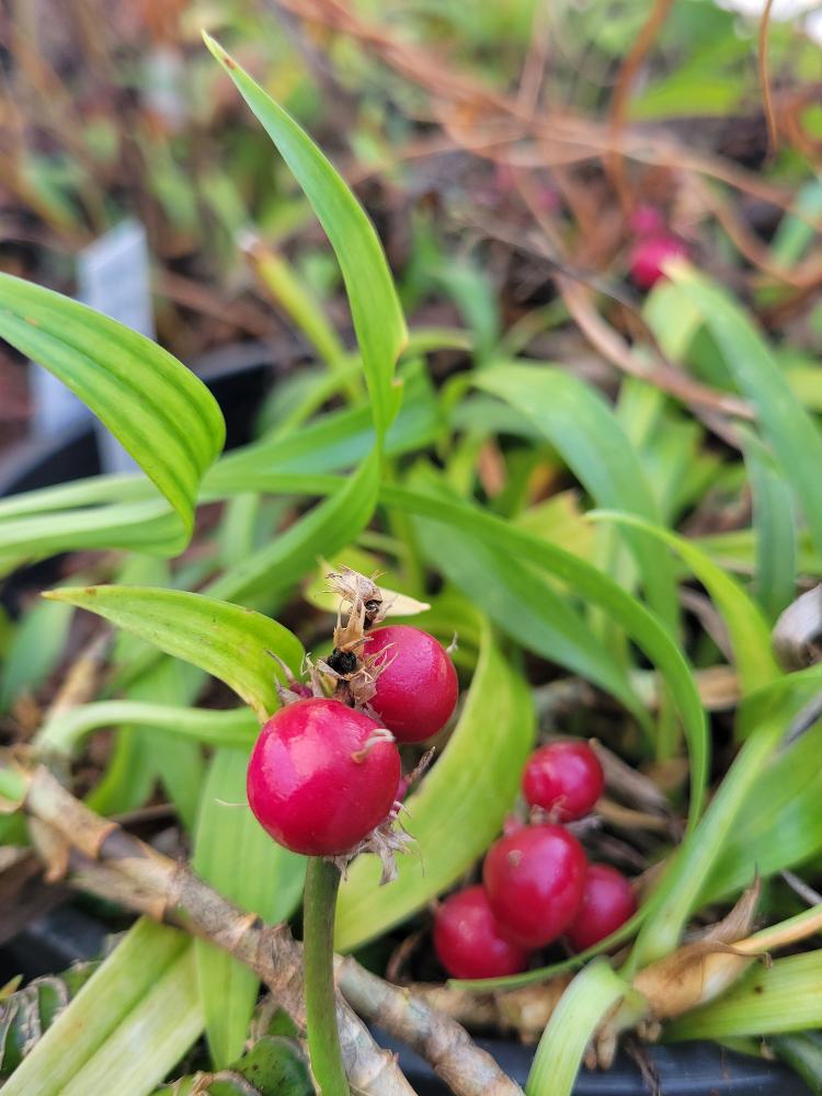 Unit price perA Darrell Probst collection of this classic Chinese evergreen groundcover which sends Kelly into defensive throes of passionate oration when ne'er do well gardeners question its place. Little candles of pink and white flowers held by the arched creeping candelabra stems which are then followed by glossy red baubles that would be fabulous as miniature ornaments. Let the Christmas reign of holly end and the new dawn of Reineckea begin.
